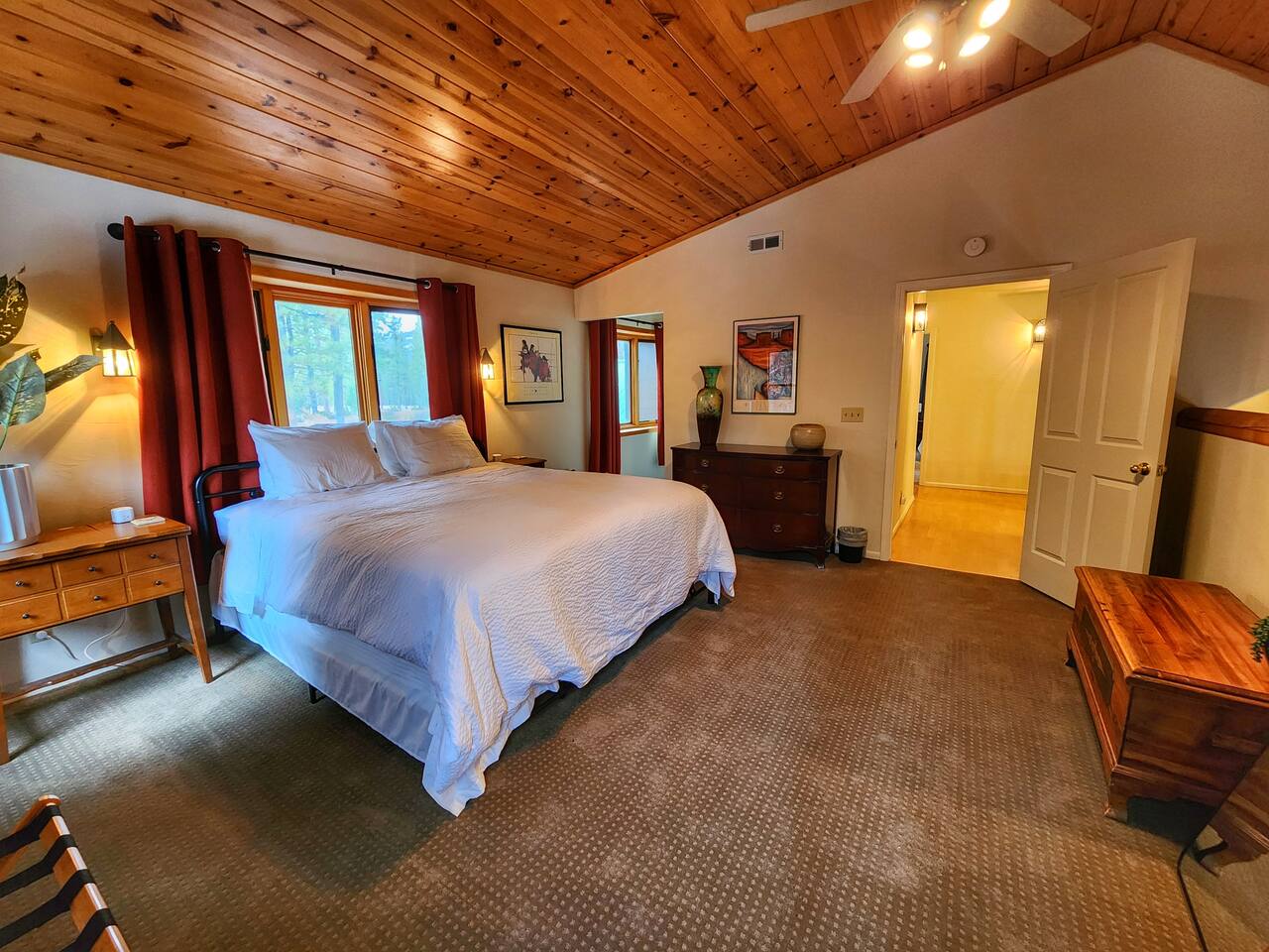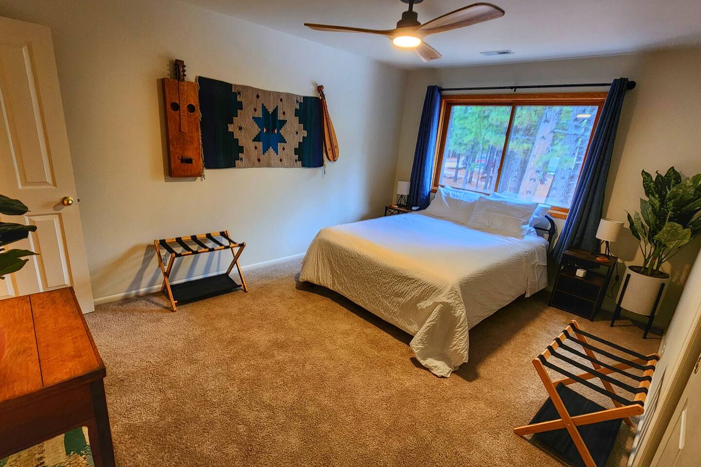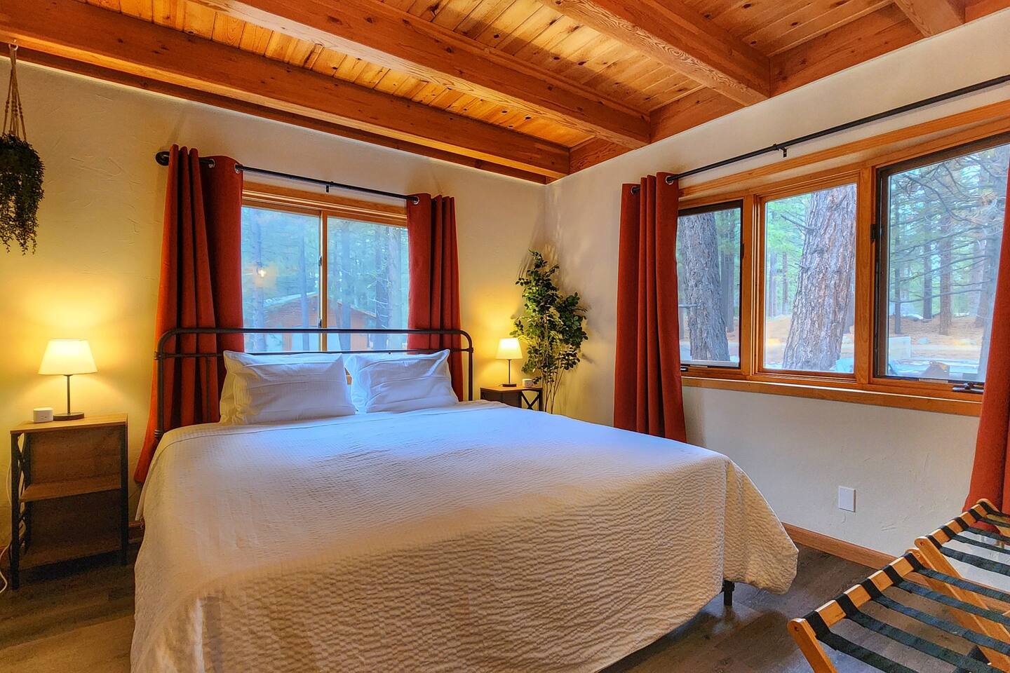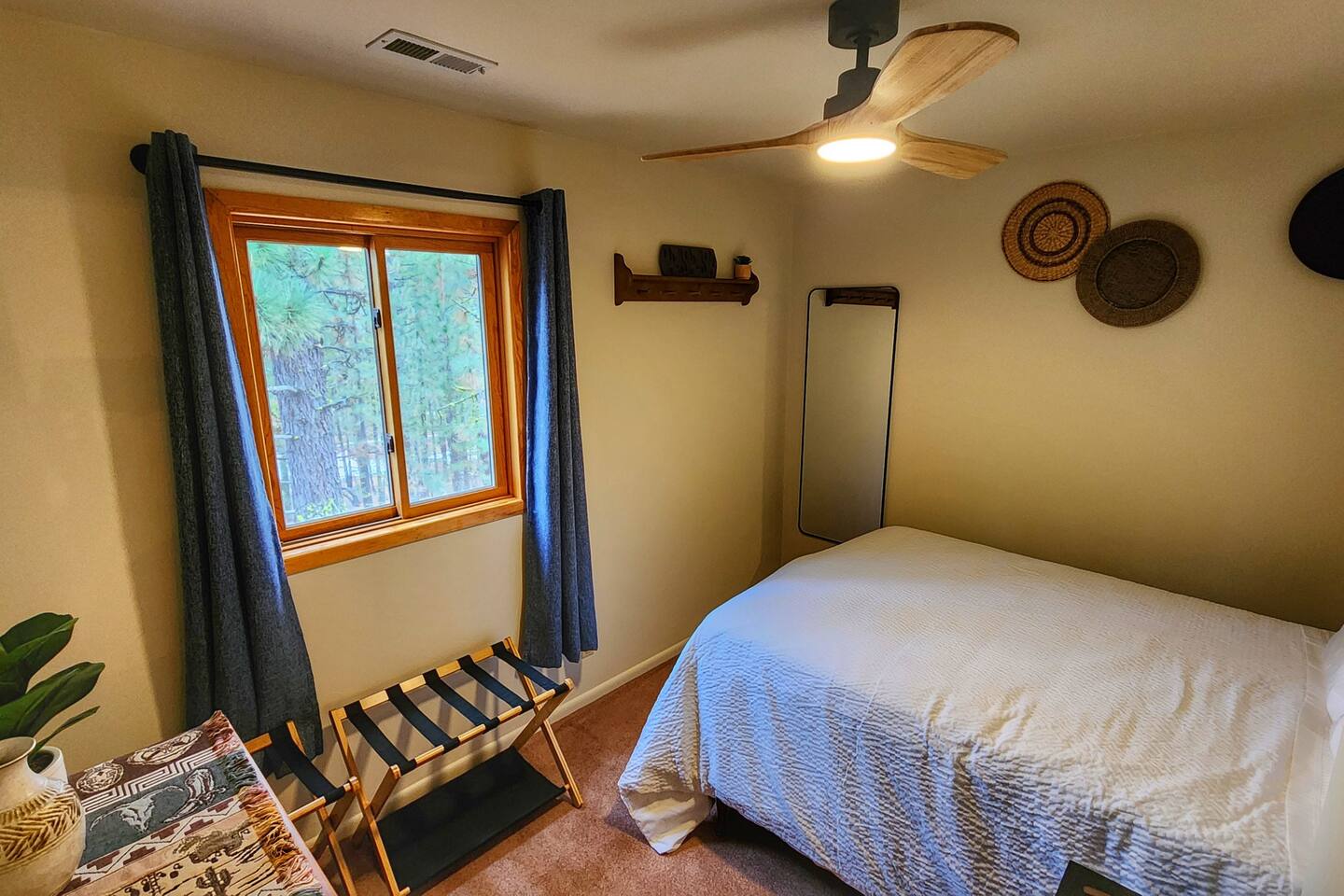 When you enter The Lost Sierra Lodge, the home opens up around you, revealing warm gathering spaces, natural light, and room for everyone to settle in. Some guests gravitate to the pool hall, others to the great room or deck, but the entire lodge is designed to make it easy for groups to relax, connect, and enjoy their time in the mountains. GREAT ROOM: KITCHEN, DINING, AND LIVING A spacious open layout brings everyone together. Relax on the sectional and enjoy the 75 inch smart TV with guest mode, or curl up by the wood stove. Multiple charging stations with USB A, USB C, and outlets are positioned throughout the room for convenience. A guitar sits ready for guests who want to play, and a piano restoration is currently in progress. POOL HALL A dedicated entertainment space with an 8 foot pool table, bar seating, and a comfortable lounge area. A Bluetooth soundbar sets the atmosphere, and French doors open directly to the deck and gas fire pit, creating an easy indoor and outdoor flow for group hangouts. GAME ROOM A professional 8 person poker table, complete with chips and cards, offers long evenings of friendly competition. The convertible top functions as a puzzle and game table and can also serve as additional dining space when the group needs it. FULLY STOCKED KITCHEN AND DINING Fully stocked for group cooking, the kitchen is equipped for preparing meals for groups of up to ten, with attention to both quality and detail. You’ll find formal and disposable dinnerware with complete sets for ten, including plates, bowls, wine glasses, tumblers, flatware, and steak knives. Cooking equipment includes a 14 piece ceramic pots and pans set, cutting boards, baking trays, muffin tins, a knife block with sharpener, measuring cups, mixing bowls, and a wide range of utensils. Small appliances include: • KitchenAid mixer • Blender • Rice maker • Popcorn machine (bring kernels) • Crockpots • Air fryer and toaster oven combo The pantry is stocked with over twenty spices, seasoning blends, BBQ rub, flour, sugars, pancake mix, and maple syrup to make cooking easy without multiple store runs. A dedicated coffee and tea station includes a standard pot and a K-Cup machine, with complimentary coffee grounds, pods, decaf options, an electric kettle, and Earl Grey and green teas. A built in desk with USB charging is integrated into the cabinetry, and the Wi-Fi router is placed in the living room for strong, reliable coverage. WRAP AROUND DECK AND BACKYARD The expansive deck offers a relaxing outdoor setting with a 7 person hot tub (please bring your own pool towels), outdoor dining for ten, a BBQ grill, and a gas fire pit. In the backyard, two disc golf baskets provide a fun activity between meals or outings. BEDROOMS Every bedroom includes freshly replaced hospitality grade linens, four pillows per bed (two firm and two soft), room darkening curtains, full length mirrors, luggage racks, and nightstands with USB A, USB C, and standard outlets. Each room offers ample storage through closets, drawers, or dressers. All upstairs bedrooms include ceiling fans for added airflow. Bedroom 1 (Downstairs) King bed, two luggage racks, under bed wheeled drawers, coat rack. Bedroom 2 (Loft Primary) King bed, en suite bathroom, wedding dress hook , sitting area, walk-in closet with shelving and hangers, emergency fire ladder, heaters, additional fans, and supplies for children and dogs. Bedrooms 3 and 4 Queen beds, closets with shelving and hangers, ceiling fans. Each includes an additional twin air mattress. Bedroom 5 Full bed and dresser with ceiling fan. BATHROOMS Each bathroom is stocked with dual rainfall showerheads, fresh towels, soap, shampoo, conditioner, body wash, and makeup cloths. Hairdryers and charging stations (USB A, USB C, outlets) are provided in each bathroom, along with excellent lighting ideal for getting ready for weddings, events, or nights out. Bathroom 1 (Downstairs Full Bath) Shower and tub combo with attached laundry room. Bathroom 2 (Primary En Suite) Standing shower, separate jetted tub, and a wide vanity mirror. Bathroom 3 (Upstairs Full Bath) Large shower and tub combo with an extended mirror. INFANTS We provide outlet covers, a high chair, and a pack n play. Please bring your own baby bedding. Our Story and Local Connections This home is more than a rental. Built by my parents in the late 1980s, it remains a family property that we care for deeply. Renting it seasonally helps us preserve a place that has been part of our family for generations. Our roots in the Lost Sierra date back to the 1800s, and we have deep connections throughout the community. We love sharing the best of Portola and Graeagle, from local food and breweries to hiking trails, scenic parks, golf courses, and optional in-home services such as yoga, bartending, and catering. To make planning easy, we provide a digital guidebook with all our favorite recommendations as soon as you book, which may be the most detailed and thoughtfully curated guide to Portola and Graeagle in the area.