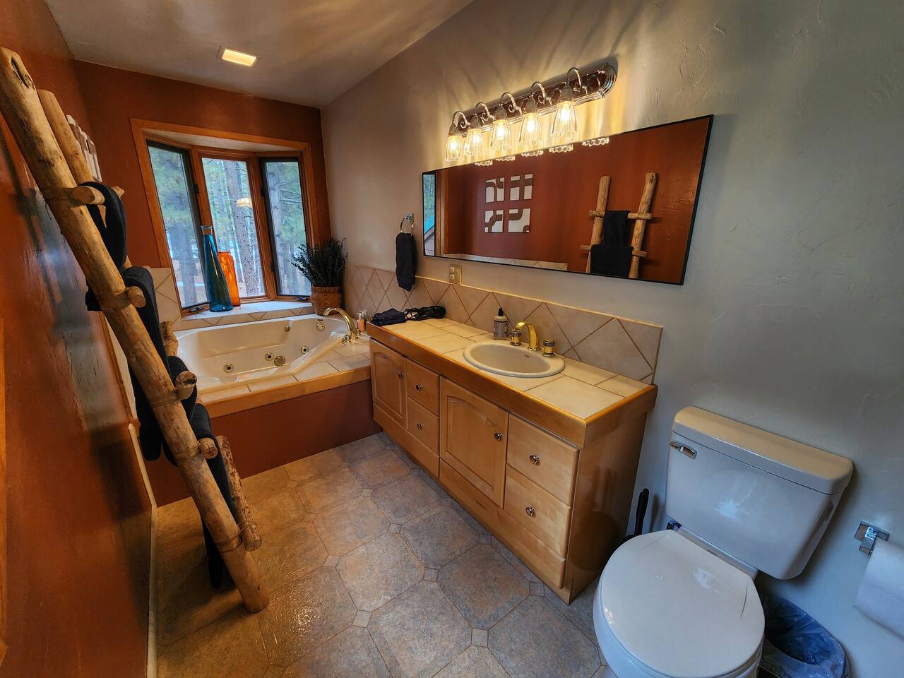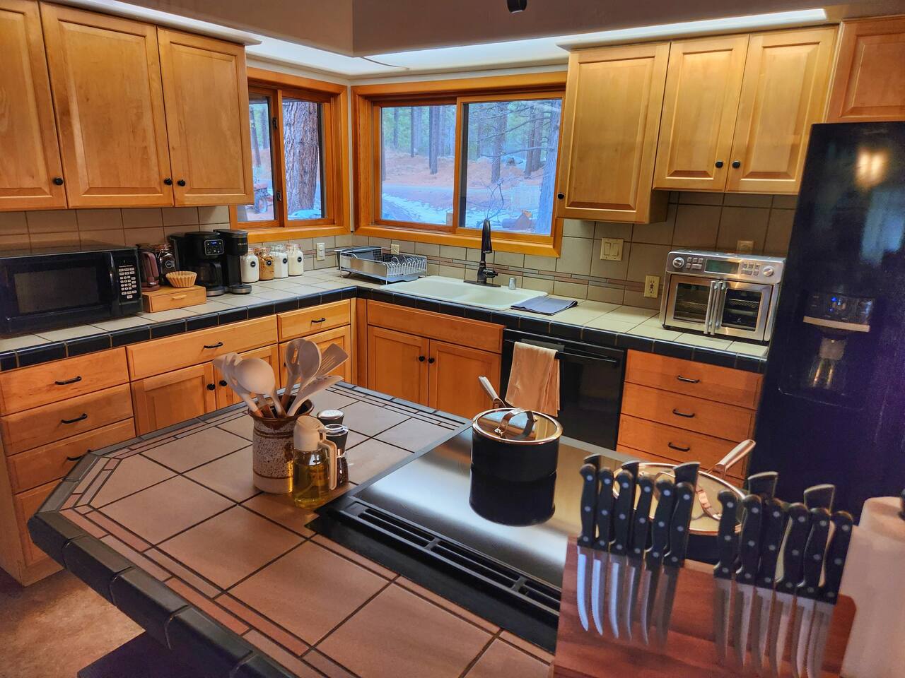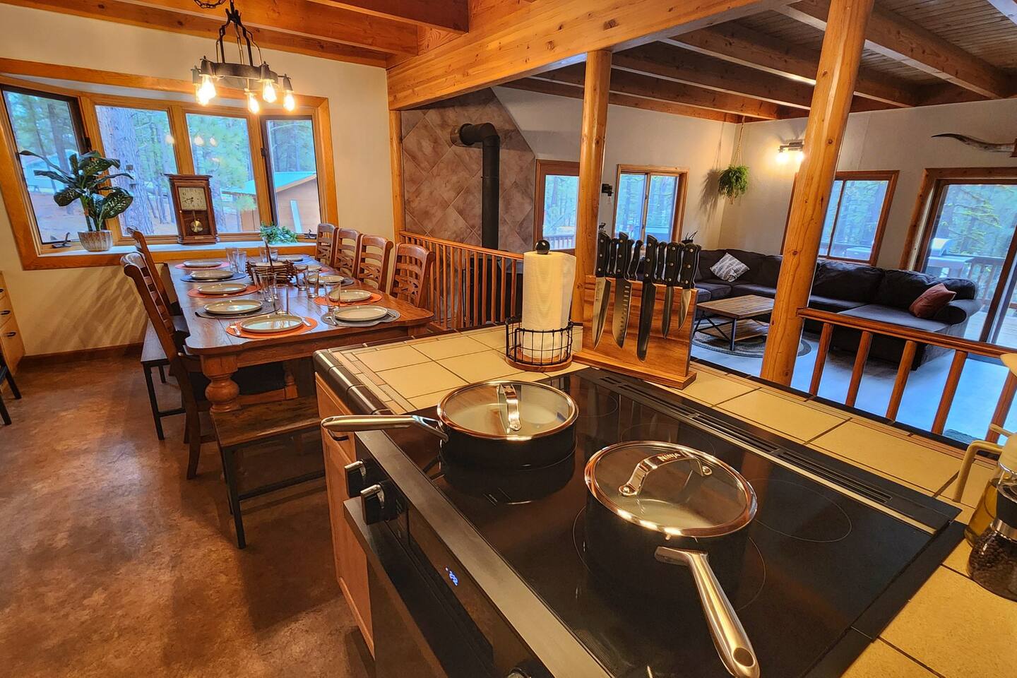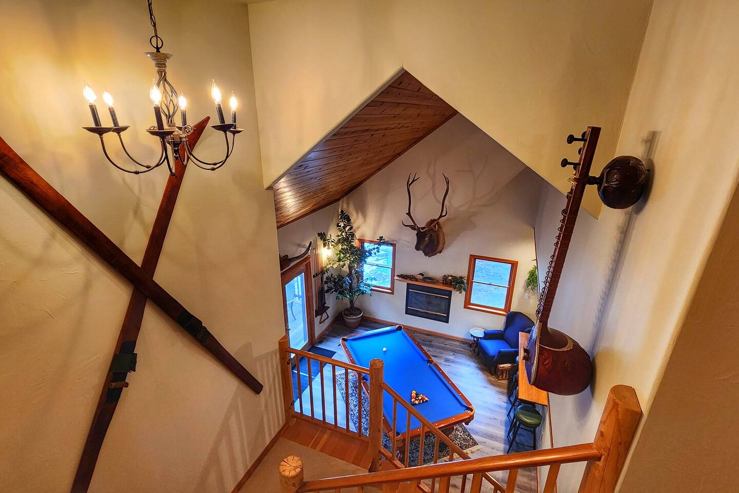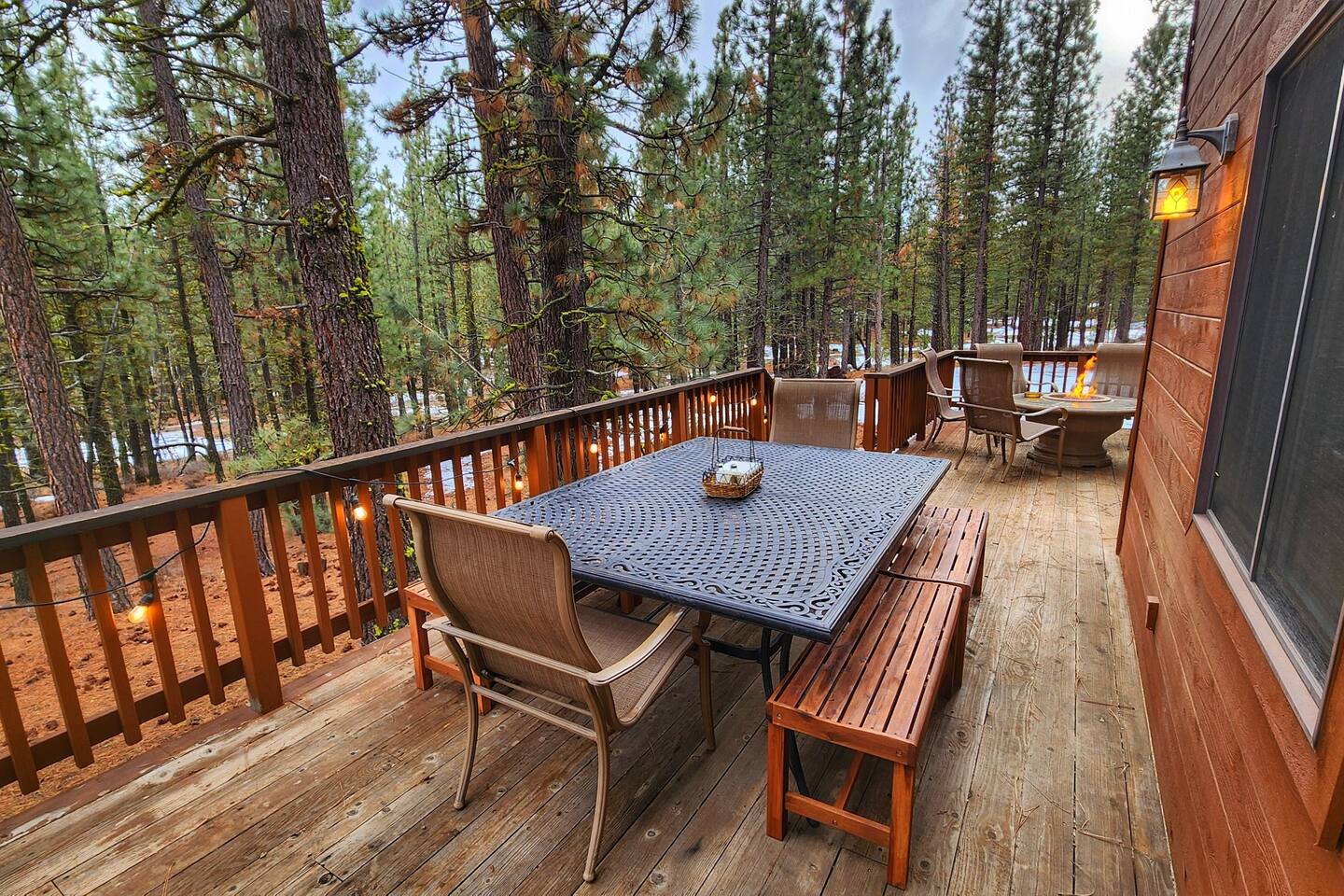 When you enter The Lost Sierra Lodge, the home opens up around you, revealing warm gathering spaces, natural light, and room for everyone to settle in. Some guests gravitate to the pool hall, others to the great room or deck, but the entire lodge is designed to make it easy for groups to relax, connect, and enjoy their time in the mountains. GREAT ROOM: KITCHEN, DINING, AND LIVING A spacious open layout brings everyone together. Relax on the sectional and enjoy the 75 inch smart TV with guest mode, or curl up by the wood stove. Multiple charging stations with USB A, USB C, and outlets are positioned throughout the room for convenience. A guitar sits ready for guests who want to play, and a piano restoration is currently in progress. POOL HALL A dedicated entertainment space with an 8 foot pool table, bar seating, and a comfortable lounge area. A Bluetooth soundbar sets the atmosphere, and French doors open directly to the deck and gas fire pit, creating an easy indoor and outdoor flow for group hangouts. GAME ROOM A professional 8 person poker table, complete with chips and cards, offers long evenings of friendly competition. The convertible top functions as a puzzle and game table and can also serve as additional dining space when the group needs it. FULLY STOCKED KITCHEN AND DINING Fully stocked for group cooking, the kitchen is equipped for preparing meals for groups of up to ten, with attention to both quality and detail. You’ll find formal and disposable dinnerware with complete sets for ten, including plates, bowls, wine glasses, tumblers, flatware, and steak knives. Cooking equipment includes a 14 piece ceramic pots and pans set, cutting boards, baking trays, muffin tins, a knife block with sharpener, measuring cups, mixing bowls, and a wide range of utensils. Small appliances include: • KitchenAid mixer • Blender • Rice maker • Popcorn machine (bring kernels) • Crockpots • Air fryer and toaster oven combo The pantry is stocked with over twenty spices, seasoning blends, BBQ rub, flour, sugars, pancake mix, and maple syrup to make cooking easy without multiple store runs. A dedicated coffee and tea station includes a standard pot and a K-Cup machine, with complimentary coffee grounds, pods, decaf options, an electric kettle, and Earl Grey and green teas. A built in desk with USB charging is integrated into the cabinetry, and the Wi-Fi router is placed in the living room for strong, reliable coverage. WRAP AROUND DECK AND BACKYARD The expansive deck offers a relaxing outdoor setting with a 7 person hot tub (please bring your own pool towels), outdoor dining for ten, a BBQ grill, and a gas fire pit. In the backyard, two disc golf baskets provide a fun activity between meals or outings. BEDROOMS Every bedroom includes freshly replaced hospitality grade linens, four pillows per bed (two firm and two soft), room darkening curtains, full length mirrors, luggage racks, and nightstands with USB A, USB C, and standard outlets. Each room offers ample storage through closets, drawers, or dressers. All upstairs bedrooms include ceiling fans for added airflow. Bedroom 1 (Downstairs) King bed, two luggage racks, under bed wheeled drawers, coat rack. Bedroom 2 (Loft Primary) King bed, en suite bathroom, wedding dress hook , sitting area, walk-in closet with shelving and hangers, emergency fire ladder, heaters, additional fans, and supplies for children and dogs. Bedrooms 3 and 4 Queen beds, closets with shelving and hangers, ceiling fans. Each includes an additional twin air mattress. Bedroom 5 Full bed and dresser with ceiling fan. BATHROOMS Each bathroom is stocked with dual rainfall showerheads, fresh towels, soap, shampoo, conditioner, body wash, and makeup cloths. Hairdryers and charging stations (USB A, USB C, outlets) are provided in each bathroom, along with excellent lighting ideal for getting ready for weddings, events, or nights out. Bathroom 1 (Downstairs Full Bath) Shower and tub combo with attached laundry room. Bathroom 2 (Primary En Suite) Standing shower, separate jetted tub, and a wide vanity mirror. Bathroom 3 (Upstairs Full Bath) Large shower and tub combo with an extended mirror. INFANTS We provide outlet covers, a high chair, and a pack n play. Please bring your own baby bedding. Our Story and Local Connections This home is more than a rental. Built by my parents in the late 1980s, it remains a family property that we care for deeply. Renting it seasonally helps us preserve a place that has been part of our family for generations. Our roots in the Lost Sierra date back to the 1800s, and we have deep connections throughout the community. We love sharing the best of Portola and Graeagle, from local food and breweries to hiking trails, scenic parks, golf courses, and optional in-home services such as yoga, bartending, and catering. To make planning easy, we provide a digital guidebook with all our favorite recommendations as soon as you book, which may be the most detailed and thoughtfully curated guide to Portola and Graeagle in the area.