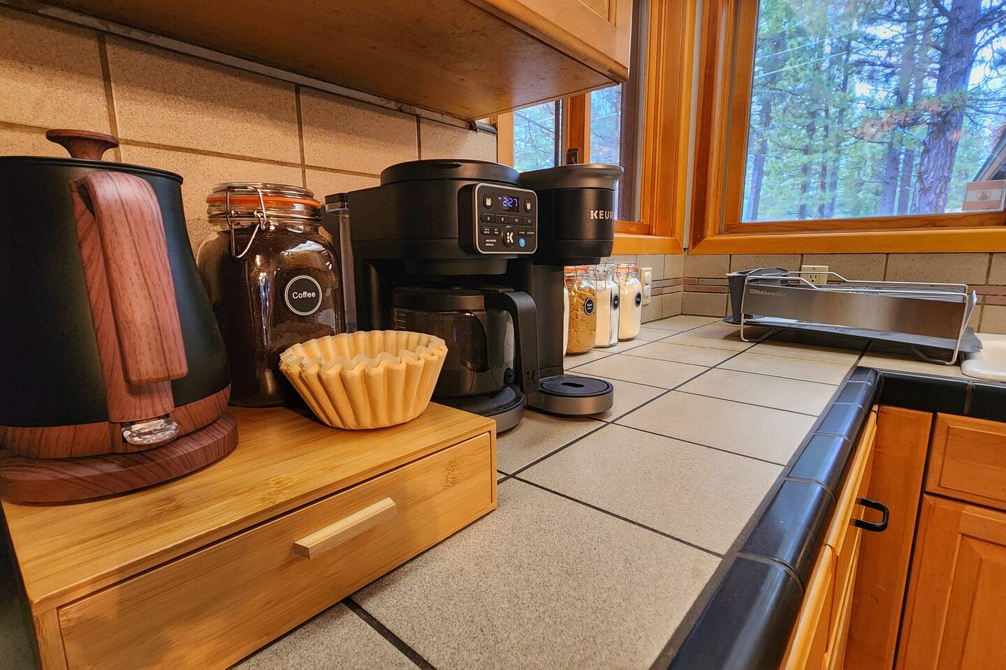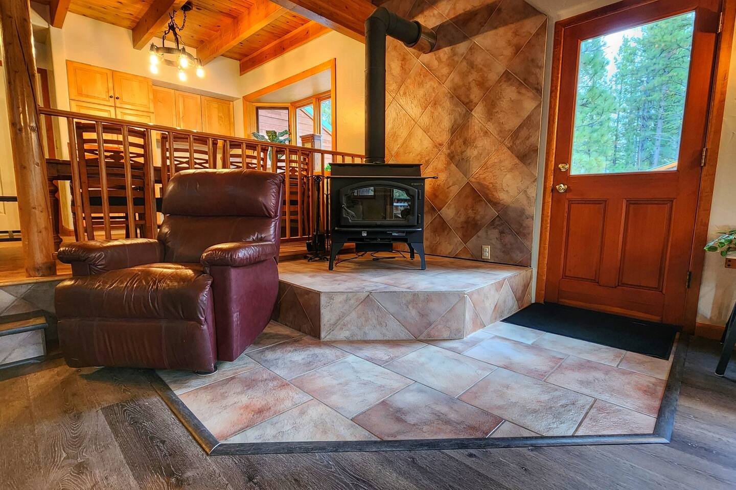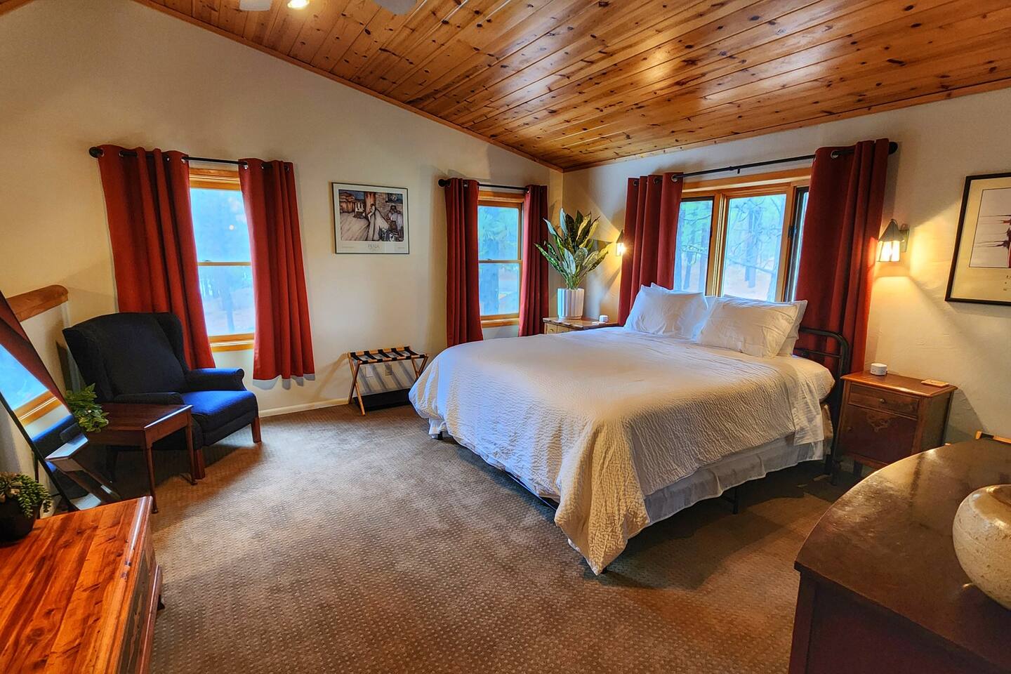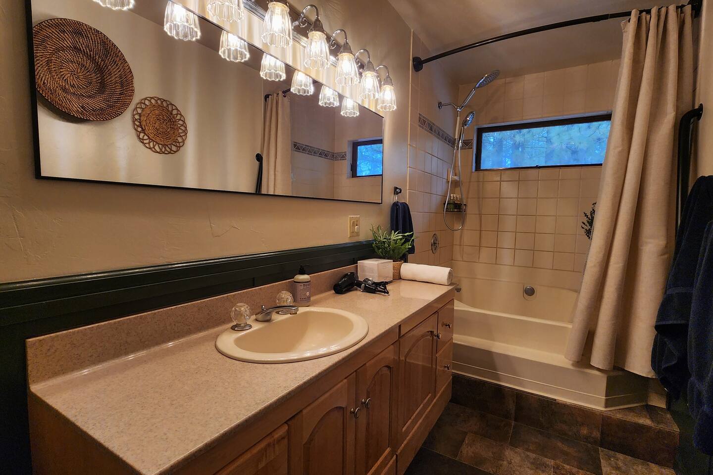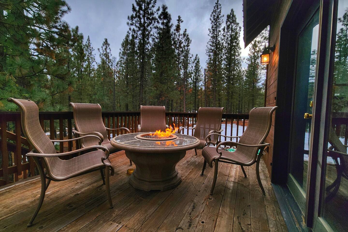 When you enter The Lost Sierra Lodge, the home opens up around you, revealing warm gathering spaces, natural light, and room for everyone to settle in. Some guests gravitate to the pool hall, others to the great room or deck, but the entire lodge is designed to make it easy for groups to relax, connect, and enjoy their time in the mountains. GREAT ROOM: KITCHEN, DINING, AND LIVING A spacious open layout brings everyone together. Relax on the sectional and enjoy the 75 inch smart TV with guest mode, or curl up by the wood stove. Multiple charging stations with USB A, USB C, and outlets are positioned throughout the room for convenience. A guitar sits ready for guests who want to play, and a piano restoration is currently in progress. POOL HALL A dedicated entertainment space with an 8 foot pool table, bar seating, and a comfortable lounge area. A Bluetooth soundbar sets the atmosphere, and French doors open directly to the deck and gas fire pit, creating an easy indoor and outdoor flow for group hangouts. GAME ROOM A professional 8 person poker table, complete with chips and cards, offers long evenings of friendly competition. The convertible top functions as a puzzle and game table and can also serve as additional dining space when the group needs it. FULLY STOCKED KITCHEN AND DINING Fully stocked for group cooking, the kitchen is equipped for preparing meals for groups of up to ten, with attention to both quality and detail. You’ll find formal and disposable dinnerware with complete sets for ten, including plates, bowls, wine glasses, tumblers, flatware, and steak knives. Cooking equipment includes a 14 piece ceramic pots and pans set, cutting boards, baking trays, muffin tins, a knife block with sharpener, measuring cups, mixing bowls, and a wide range of utensils. Small appliances include: • KitchenAid mixer • Blender • Rice maker • Popcorn machine (bring kernels) • Crockpots • Air fryer and toaster oven combo The pantry is stocked with over twenty spices, seasoning blends, BBQ rub, flour, sugars, pancake mix, and maple syrup to make cooking easy without multiple store runs. A dedicated coffee and tea station includes a standard pot and a K-Cup machine, with complimentary coffee grounds, pods, decaf options, an electric kettle, and Earl Grey and green teas. A built in desk with USB charging is integrated into the cabinetry, and the Wi-Fi router is placed in the living room for strong, reliable coverage. WRAP AROUND DECK AND BACKYARD The expansive deck offers a relaxing outdoor setting with a 7 person hot tub (please bring your own pool towels), outdoor dining for ten, a BBQ grill, and a gas fire pit. In the backyard, two disc golf baskets provide a fun activity between meals or outings. BEDROOMS Every bedroom includes freshly replaced hospitality grade linens, four pillows per bed (two firm and two soft), room darkening curtains, full length mirrors, luggage racks, and nightstands with USB A, USB C, and standard outlets. Each room offers ample storage through closets, drawers, or dressers. All upstairs bedrooms include ceiling fans for added airflow. Bedroom 1 (Downstairs) King bed, two luggage racks, under bed wheeled drawers, coat rack. Bedroom 2 (Loft Primary) King bed, en suite bathroom, wedding dress hook , sitting area, walk-in closet with shelving and hangers, emergency fire ladder, heaters, additional fans, and supplies for children and dogs. Bedrooms 3 and 4 Queen beds, closets with shelving and hangers, ceiling fans. Each includes an additional twin air mattress. Bedroom 5 Full bed and dresser with ceiling fan. BATHROOMS Each bathroom is stocked with dual rainfall showerheads, fresh towels, soap, shampoo, conditioner, body wash, and makeup cloths. Hairdryers and charging stations (USB A, USB C, outlets) are provided in each bathroom, along with excellent lighting ideal for getting ready for weddings, events, or nights out. Bathroom 1 (Downstairs Full Bath) Shower and tub combo with attached laundry room. Bathroom 2 (Primary En Suite) Standing shower, separate jetted tub, and a wide vanity mirror. Bathroom 3 (Upstairs Full Bath) Large shower and tub combo with an extended mirror. INFANTS We provide outlet covers, a high chair, and a pack n play. Please bring your own baby bedding. Our Story and Local Connections This home is more than a rental. Built by my parents in the late 1980s, it remains a family property that we care for deeply. Renting it seasonally helps us preserve a place that has been part of our family for generations. Our roots in the Lost Sierra date back to the 1800s, and we have deep connections throughout the community. We love sharing the best of Portola and Graeagle, from local food and breweries to hiking trails, scenic parks, golf courses, and optional in-home services such as yoga, bartending, and catering. To make planning easy, we provide a digital guidebook with all our favorite recommendations as soon as you book, which may be the most detailed and thoughtfully curated guide to Portola and Graeagle in the area.