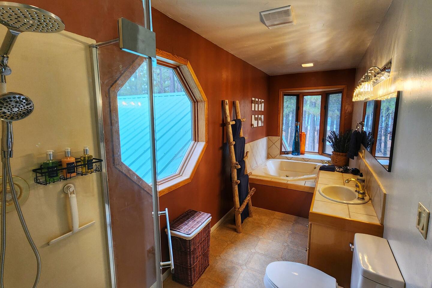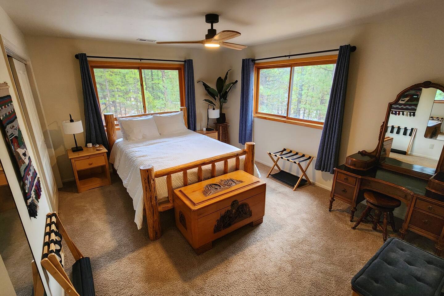 The home is located 0.2 miles up a sedan-accessible dirt road. Please drive slowly and respect the quiet mountain neighborhood. All living spaces are available for your enjoyment during your stay, except for two locked closets dedicated to our housekeeping team. The following areas are not accessible to guests: the attached garage (no indoor parking), the detached shop across the property, the attic, the basement, and the pumphouse. These areas are used for owner storage and housekeeping supplies.